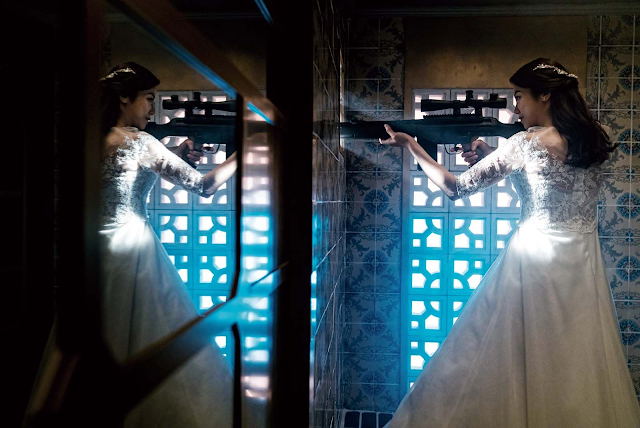 Aliás, vingança é algo que não falta nesse filme. Afinal, esse é plot principal. Nossa personagem tornou-se uma assassina para vingar seu pai. O homem que a treinou é quem se tornou seu marido, o que acheio meio estranho, afinal, ela MUUUUUIITO mais nova do que ele. E sim, tenho preconceito com isso, pois ele praticamente a criou.