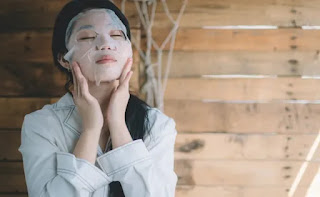 Choy aparece na frente da casa usando máscara de tratamento de beleza.
